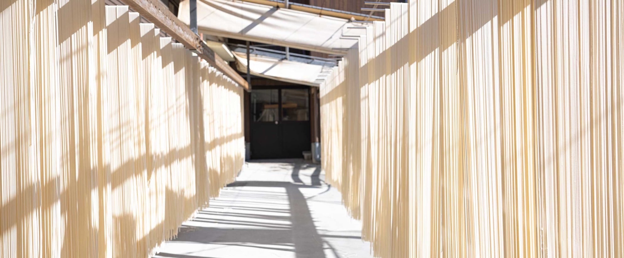 本商品は、瀬戸内の日差しと潮風の中、昔ながらの天日干し製法で造る麺です。